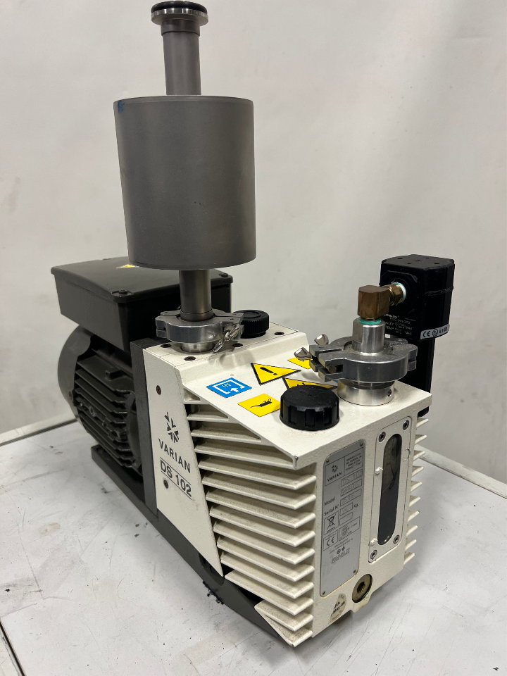 Available for purchase is a used Alcatel Varian DS-102 Dual Stage Vacuum Pump