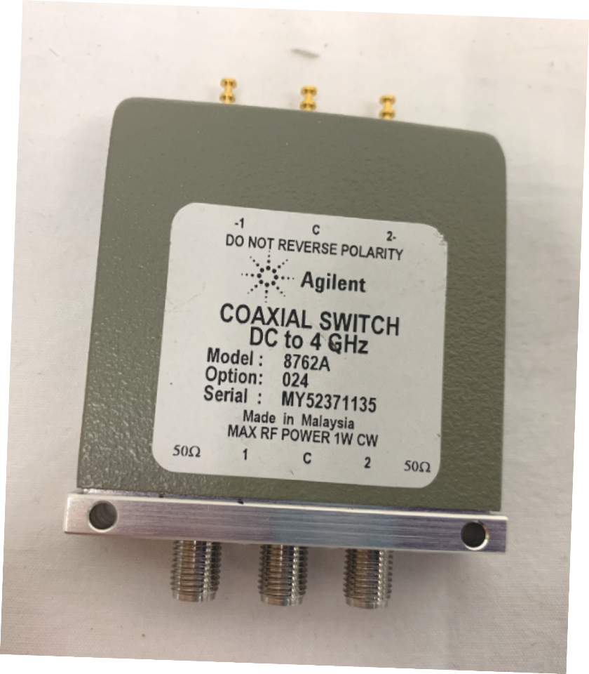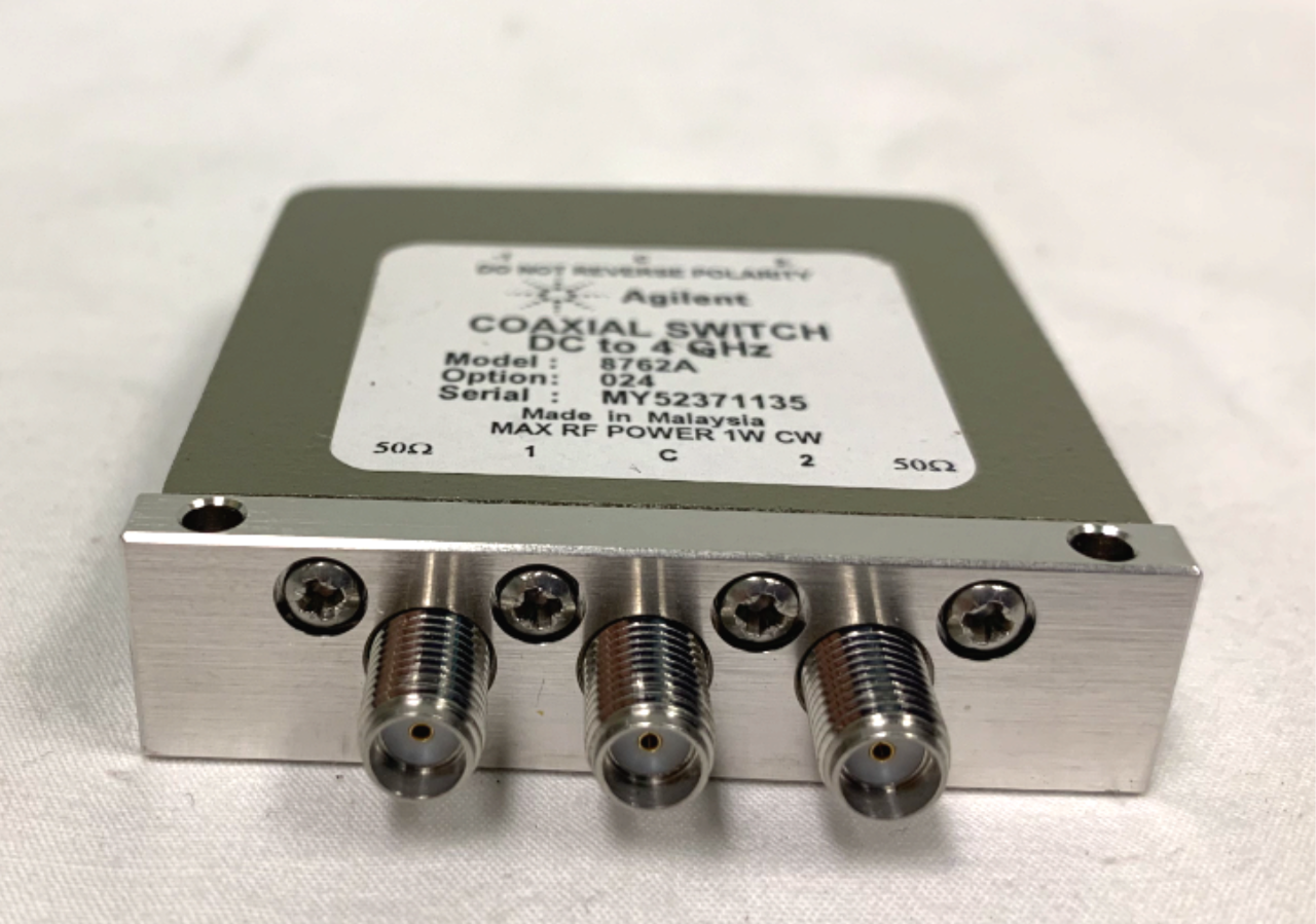 Available for sale is an HP Agilent 8762A OPT 024 DC - 4Ghz 24VDC SMA RF Coaxial Switch