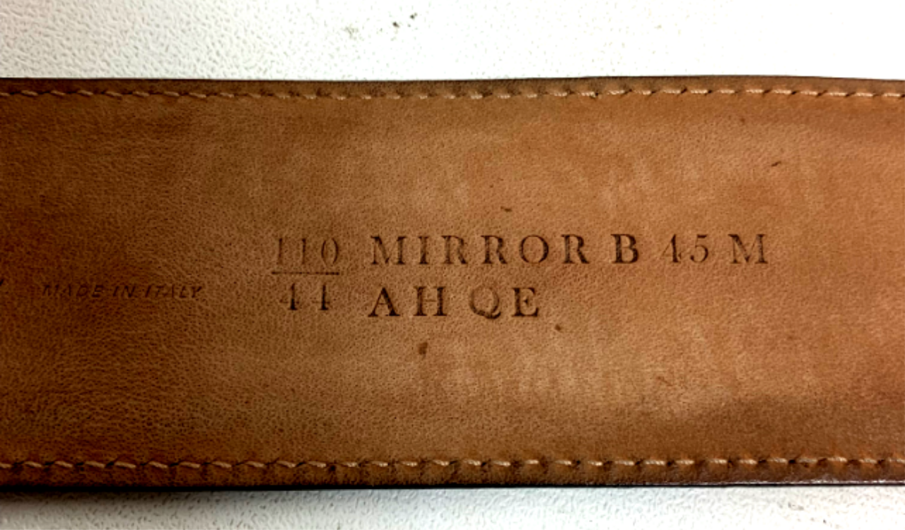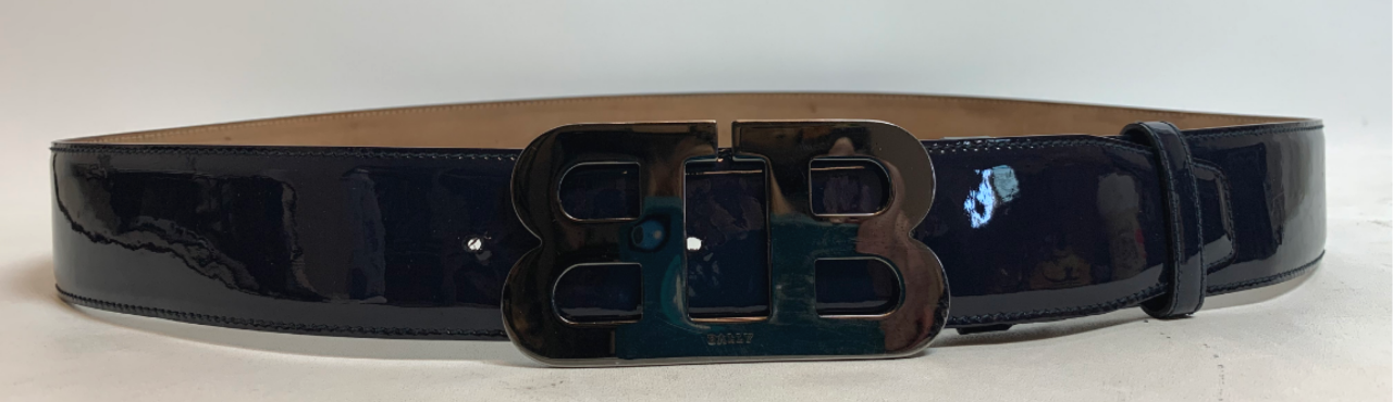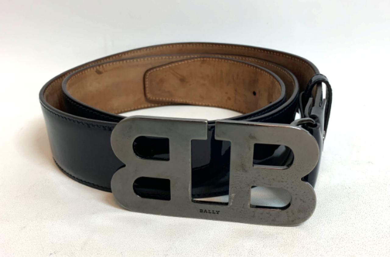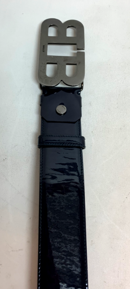 Available for purchase is a used BALLY Men's Mirror B Buckle Belt Black Leather / Multi Size 44 / 110
