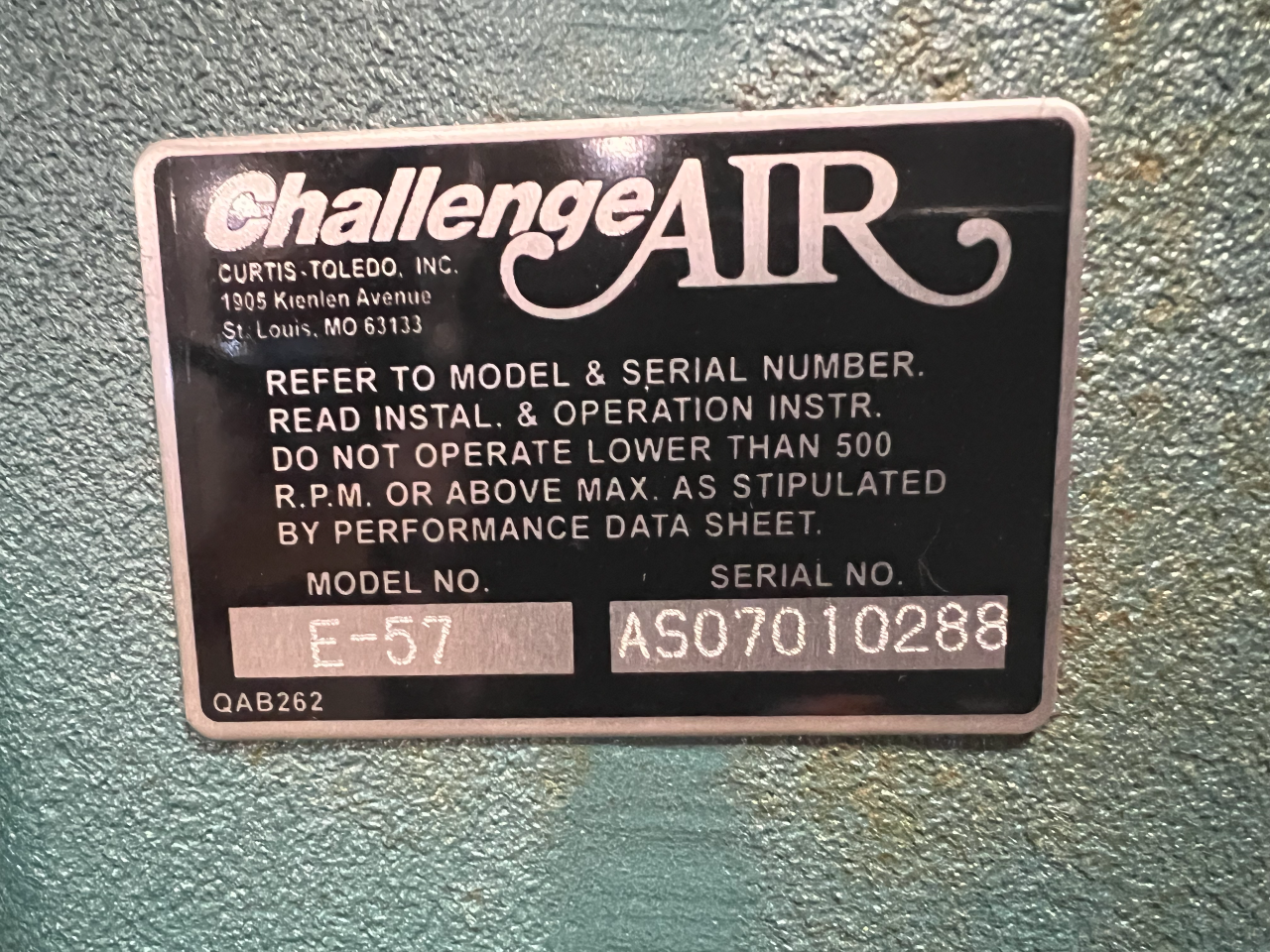 1- Challenge Air E-57 5HP Compressor 200v 3Phase