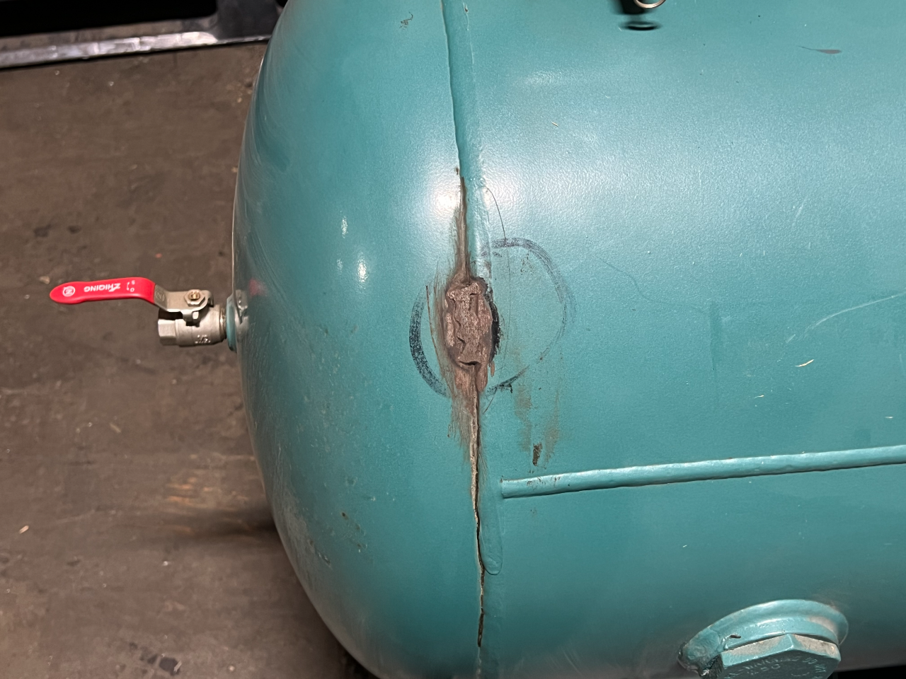 When I purchased this compressor, it had a hole in the tank. I had it professionally repaired. Please see the photos for the repair.