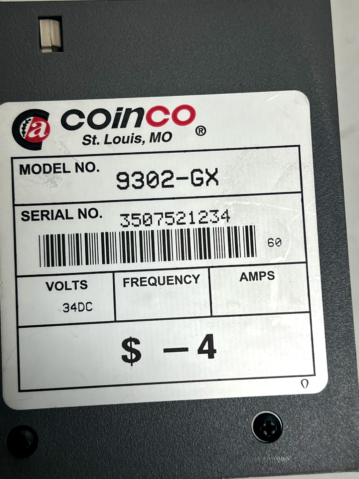 Available for purchase is a Coinco 9302-GX BP4BX Coin dispenser and Bill Validator With Hardware