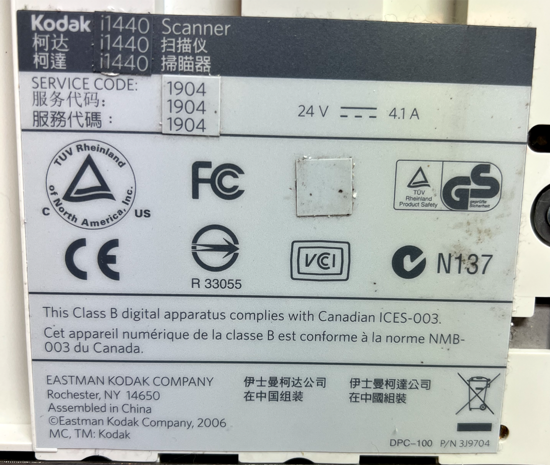 1 – KODAK i1440 Sheetfed Document Scanner with ADF - No AC adapter
