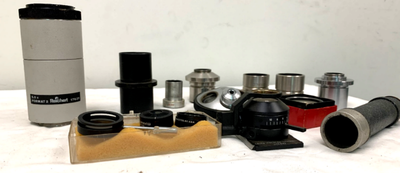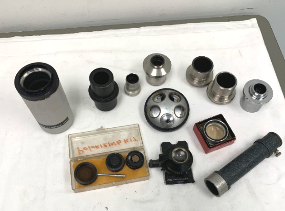 Available for purchase is a large lot of vintage Microscope Eye pieces and other parts.