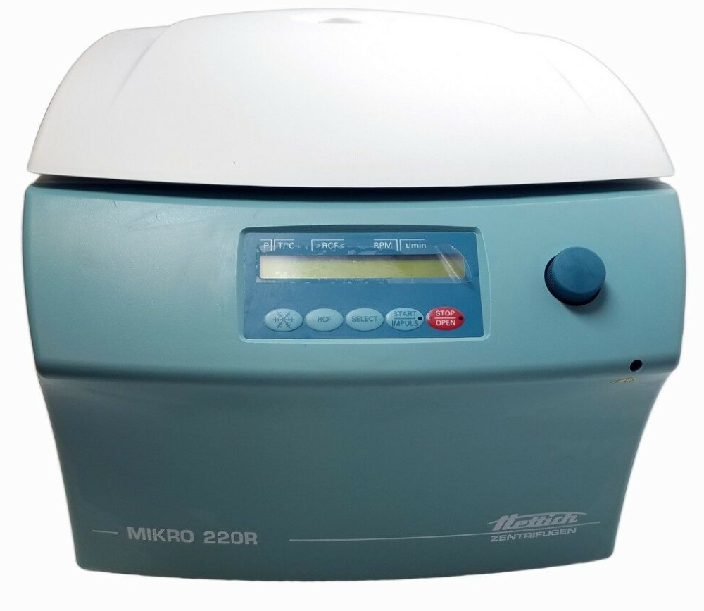 Available for sale is a New Hettich Mikro 220R Refrigerated Micro Centrifuge.