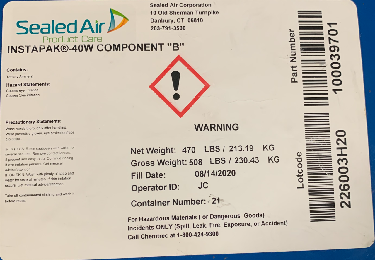 1 – Container Sealed Air Instapak Component B 55 Gallon Drum B-40W