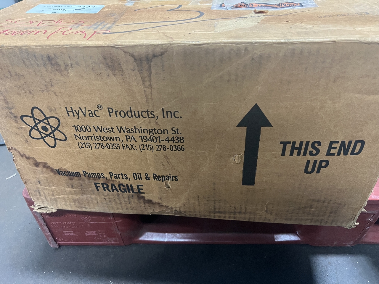 This pump is new in open box. It comes with the original bottle of oil.