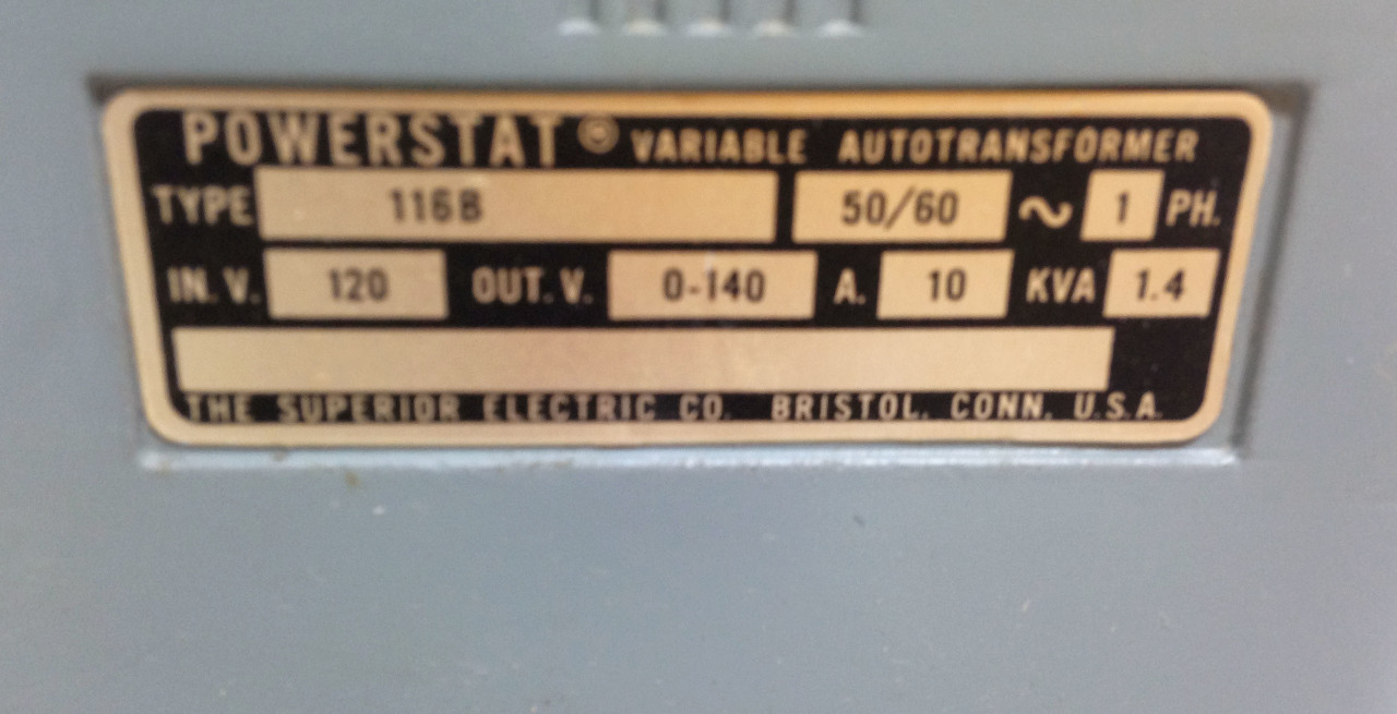 Available for sale is a POWERSTAT 116B 50/60~ 1PH 120V 0-140VOUT 10A 1.4KVA Variable Auto-Transformer.