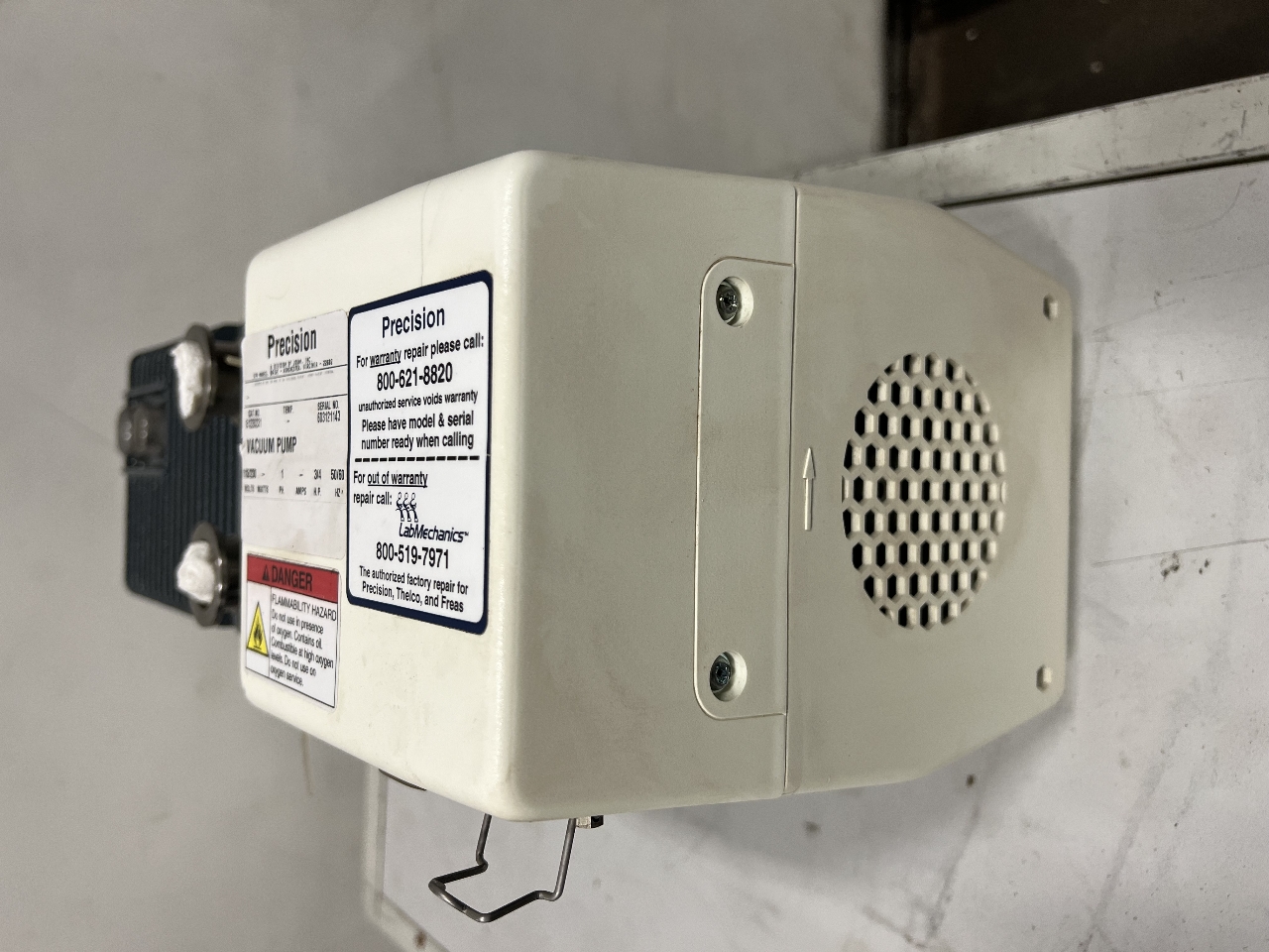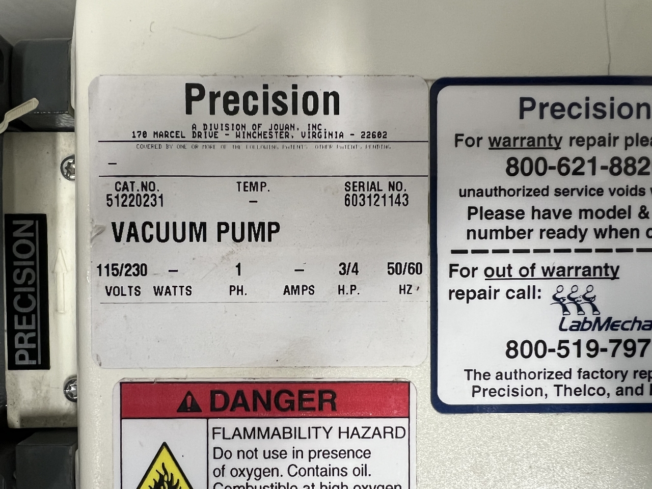 Available for purchase is a used Precision Oil-Sealed Direct-Drive Rotary Vane Vacuum Pump 115-230V 0.75HP