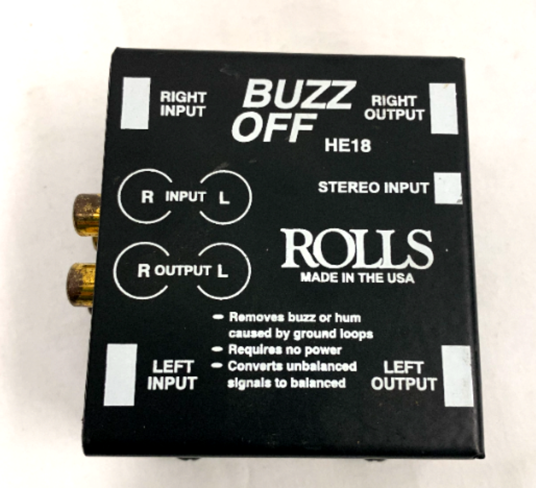 Available for purchase is a Rolls HE18 Buzz Off two channel audio hum and buzz remover