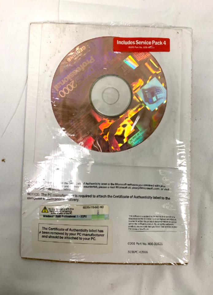 Available for sale is a Vintage MICROSOFT WINDOWS 2000 Professional W/Key NEW NOS