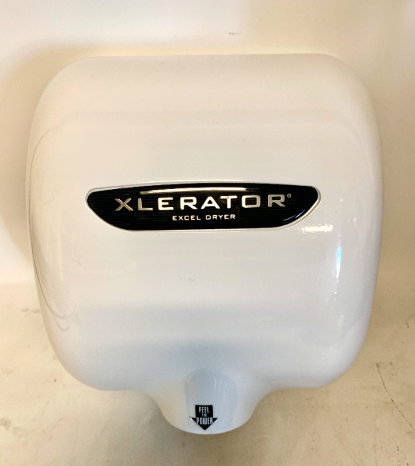Available for purchase is a used XLERATOR HAND DRYER XL-WV ECO NO TOUCH BATHROOM EXCEL XL W BW WHITE 208-277 VOLT